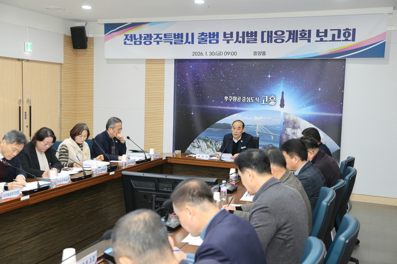 [고흥군 세계타임즈=우덕현 기자] 고흥군(군수 공영민)은 30일 군청 흥양홀에서 부군수 주재로 부서장과 관계 공무원이 참석한 가운데 전남광주특별시 출범에 따른 부서별 대응계획 보고회를 개최했다고 밝혔다.