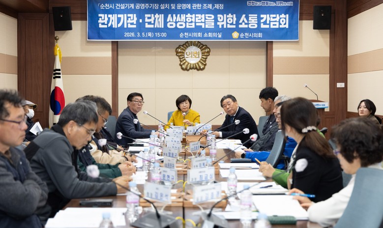[순천시 세계타임즈=우덕현 기자] 순천시의회 최미희 의원은 지난 5일 「순천시 건설기계 공영주기장 설치 및 운영에 관한 조례」 제정을 위한 간담회를 개최했다.