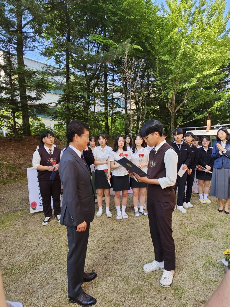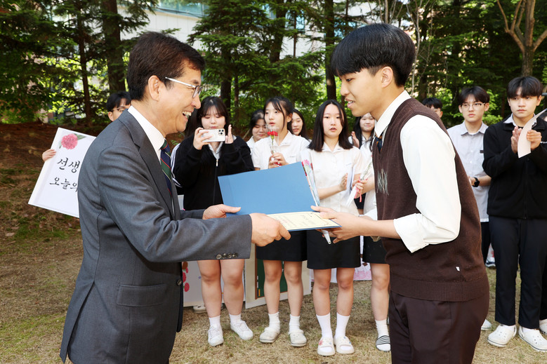 이주형(3학년) 학생회장은 “아침 등굣길에 교육감님과 선생님들의 응원을 들으니 친구들과 활기찬 하루를 보낼 수 있을 것 같다. 스승의 날을 맞이하여 항상 우리들의 곁에서 ‘참 되거라 바르거라’를 가르쳐주시는 선생님들께 ‘스승, 존경의 대상’으로 마음을 전하고 싶다.”고 소감을 전했다.
