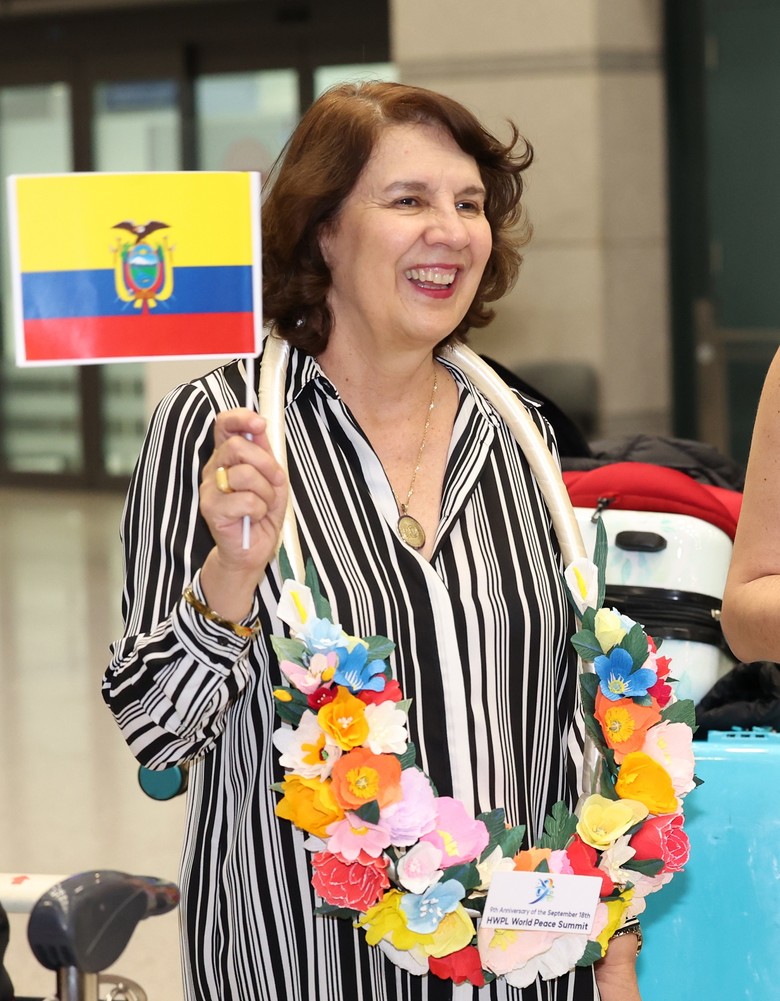 [세계타임즈 = 백진욱 기자] 로살리아 아르테아가 에콰도르 전 대통령이 HWPL 평화만국회의 9주년 기념식 참석을 위해 17일 저녁 인천국제공항을 통해 입국, 청년 회원들의 환영을 받으며 공항을 나서고 있다