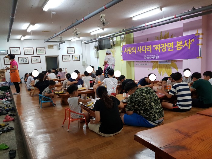 [대전=세계타임즈 이장성 기자] 폭염에도 따뜻한 이웃사랑을 꾸준히 전달하고 있는 대전시 봉사단체 사단법인 사랑의 사다리 밴드(리더 이정제)는 20일 동구 가양동에 위치한 평화의 마을(원장 신종근)에서 짜장면 봉사로 아이들과 즐거운 시간을 보냈다.