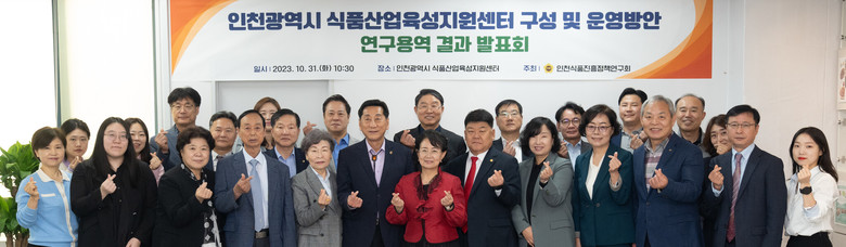 [인천 세계타임즈=심하린 기자] 인천광역시의회 의원 연구단체인 ‘인천식품진흥정책연구회(대표의원 박판순)’는 31일 인천시 식품산업육성지원센터에서 ‘인천광역시 식품산업육성지원센터 구성 및 운영 방안’ 연구용역 결과 발표회를 개최했다.