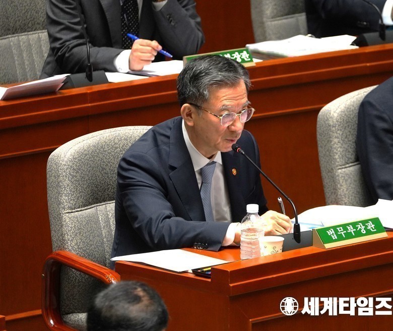 '정성호' 법무부장관이 26일 국회에서 열린 예산결산특별위원회 전체 회의에서 발언 하고있다.
