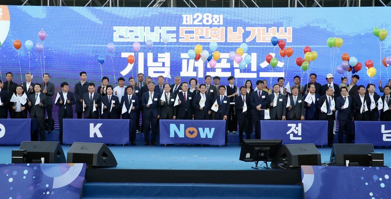 ‘OK! NOW 전남, 위대한 도민’ 슬로건을 내건 이번 도민의 날 행사에는 김영록 지사와 전남도의회 강문성.최병용.윤명희 위원장을 비롯해 도의원, 도민 등 3,000여 명이 참석한 가운데 출향가수 가요제, 도민헌장 낭독, 자랑스런 전남인 시상, 기념식 포퍼먼스 순으로 진행됐다.