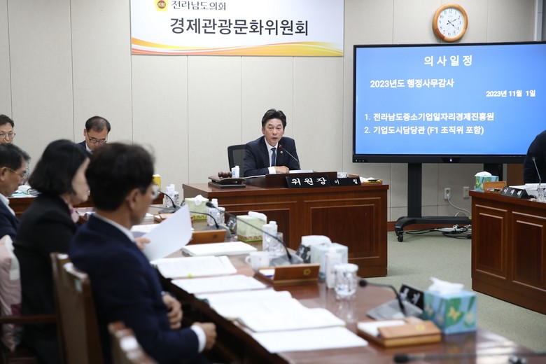 [전남 세계타임즈=우덕현 기자] 전남도의회 이철 경제관광문화위원장(더불어민주당, 완도1)은 지난 11월 1일 전라남도 중소기업일자리경제진흥원(이하 경진원) 행정사무감사에서 현재 경진원이 추진하고 있는 사업의 방향성에 대해 지적하며, 설립 목적에 맞는 중소기업 경쟁력 강화와 일자리 창출 사업에 집중할 것을 당부했다.
