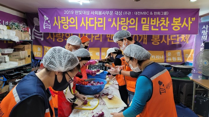 이날 봉사는 오전9시부터 대덕구 중리동 사랑의 사다리 밴드 사무실에서 청태무침, 양파초절임, 무우짱아치 3가지 밑반찬을 만들어서 편부 및 독거어르신 10가정, 지체장애인 10가정, 시각장애인 10가정 발달장애인 10가정등 40가정에 오후1시에 직접 가정으로 배달을 하였다.
