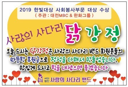 열매주간보호센터 유근선 센터장은 “오늘 사랑의 사다리 밴드 봉사단체에서 닭강정을 지원해 주어서 큰 힘과 위안이 된다.”면서 감사함을 전했다.