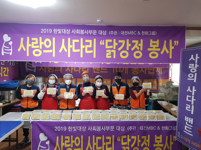 [대전=세계타임즈 이채봉 기자] 코로나19 상황에서도 비대면 봉사로 꾸준한 사랑나눔을 실천하고 있는 사랑의 사다리 밴드(리더 이정제)는 25일 오후3시, 닭강정 봉사로 우리 사회의 따뜻한 사랑을 전달 하였다.