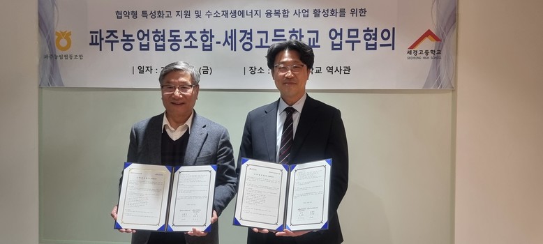 [파주시 세계타임즈=송민수 기자] 세경고등학교(교장 장계홍)는 파주농업협동조합(조합장 구선회)과 2월 28일 업무협약을 체결했다.