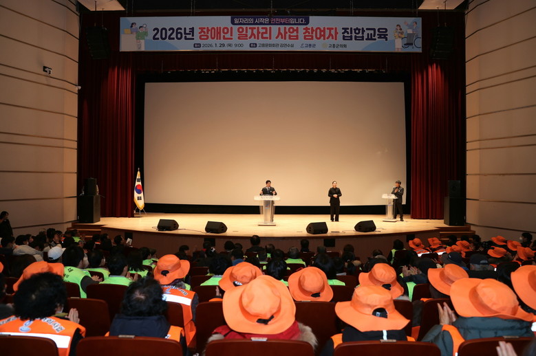 [고흥군 세계타임즈=우덕현 기자] 고흥군(군수 공영민)은 29일 고흥문화회관 김연수실에서 장애인일자리사업 참여자 204명을 대상으로 ‘2026년 장애인일자리사업 참여자 안전교육’을 실시했다고 밝혔다.