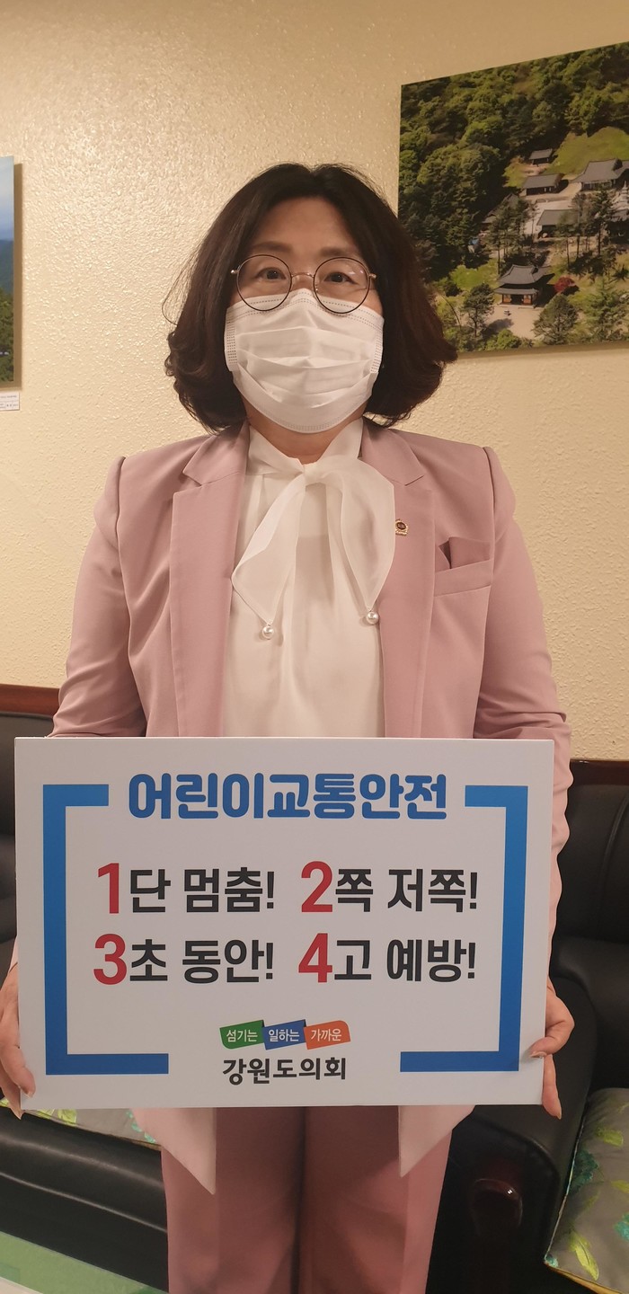 어린이보호구역 내 교통사고 예방에 대한 국민적 공감대를 형성하기 위해 행정안전부 주관으로 진행되고 있는 ‘어린이 교통안전 릴레이 챌린지’에 박상수 의원의 지목을 받은 심영미 의원은 이번 챌린지에 동참하게 됨을 뜻깊게 생각하며, 교통안전 문화 정착을 위해 지역사회에서도 적극 동참해주실 것을 당부하였다.