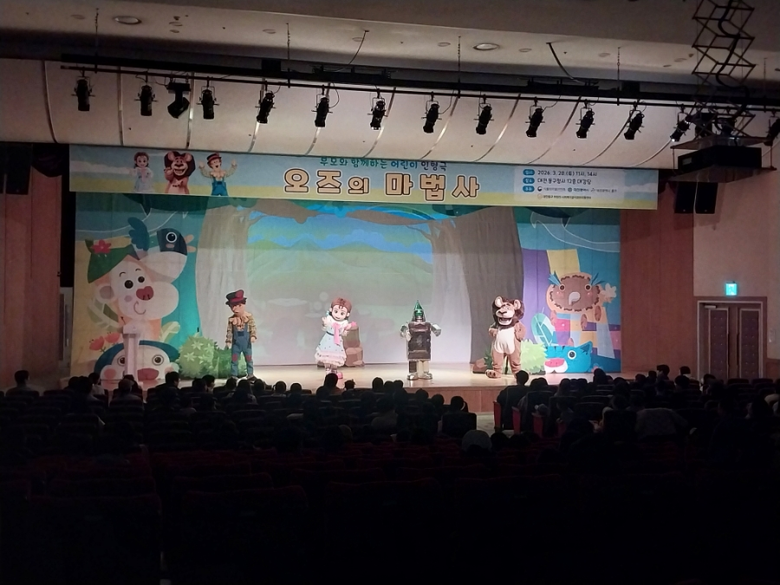 [동구 세계타임즈=이채봉 기자] 대전 동구(구청장 박희조)는 지난 28일 구청 12층 공연장에서 어린이 식생활 개선을 위한 어린이 뮤지컬 ‘오즈의 마법사 인형극’을 개최했다고 밝혔다.