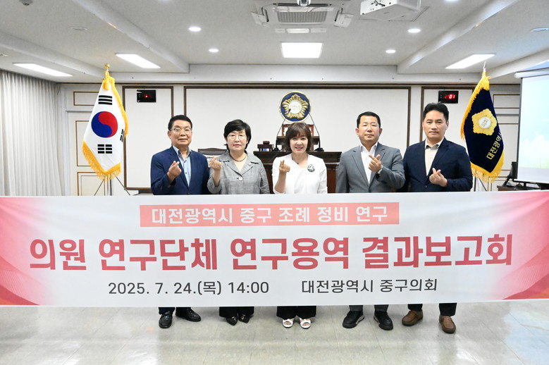 [중구 세계타임즈=송민수 기자] 대전 중구의회(의장 오은규) 의원연구단체인 ‘대전광역시 중구 조례 정비 연구회(대표의원 김석환)’는 24일 중구의회 본회의장에서 ‘대전광역시 중구 조례 정비 정책연구 결과보고회’를 가졌다고 밝혔다.
