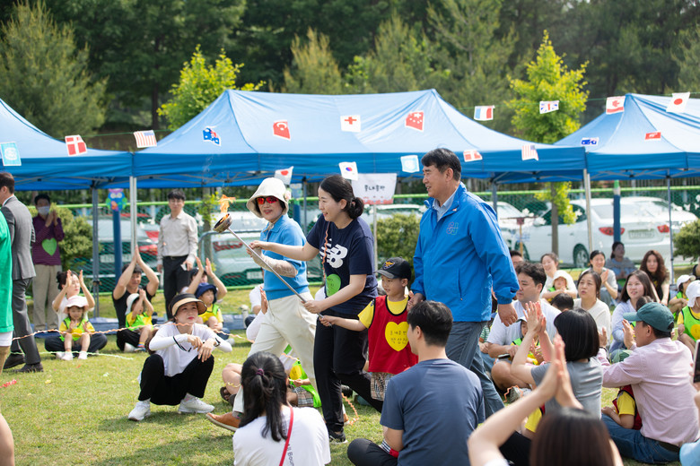 22일 첫날 3세 유치원 유아들과 학부모들이 함께 참여한 가운데 이정선 교육감이 방문해 유아들과 함께 성화를 봉송하며 불꽃을 밝혀 체육한마당의 시작을 알렸다.