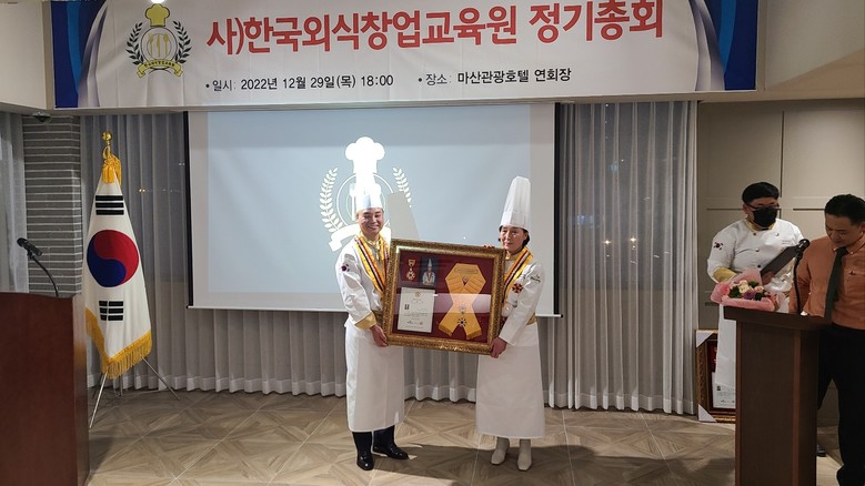 [세계타임즈]최성룡기자 = (사) 한국외식창업교육원(이사장 안형상) 정기총회 가 2022년 12월 29일 (목) 오후 7시 마산관광호텔 2층 연회장에서 50여 명의 명인들과 내빈들이 참석한 가운데 가졌다.