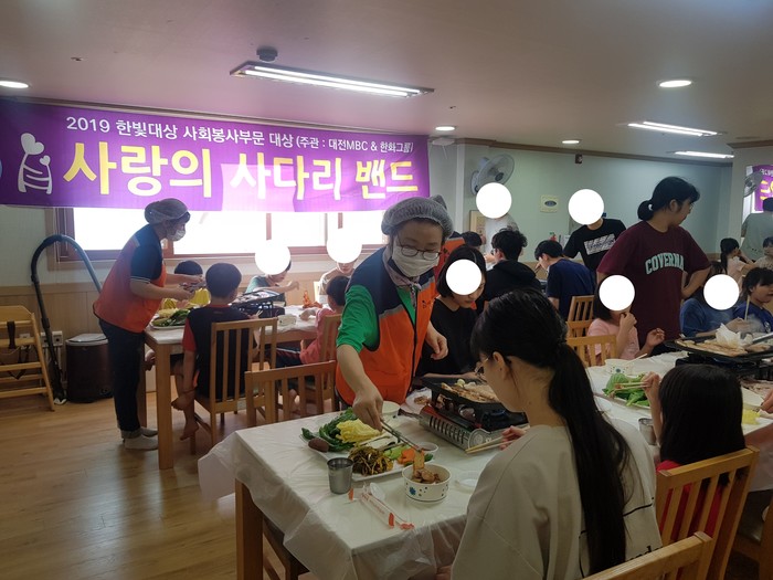 대전구세군 혜생원 김노학 원장은 “오늘 더운날씨에도 아이들을 위해서 맛있는 삼겹살을 지원해준 사랑의 사다리 밴드 봉사단체에 감사함을 전한다.”고 말했다.