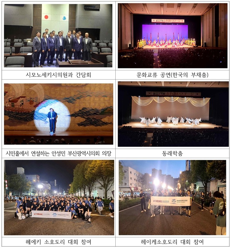 또한 최영진 행정문화위원회 위원장은 “한국과 일본의 문화교류의 상징인 조선통신사 사행이 정치적인 이슈을 초월한 양국의 문화 증진을 위한 지속적인 장이 되는데 소관 상임위원장으로서 적극 지원하겠다”고 밝혔고 강철호 2030 부산세계박람회 유치특별위원장도 “문화교류의 장으로서 조선통신사의 의의는 지구촌 문화올림픽인 세계박람회의 취지와 일맥상통하는 만큼 이번 사행을 통해 부산의 오랜 문화적 역량을 충분히 알릴 수 있었다”고 평가했다.