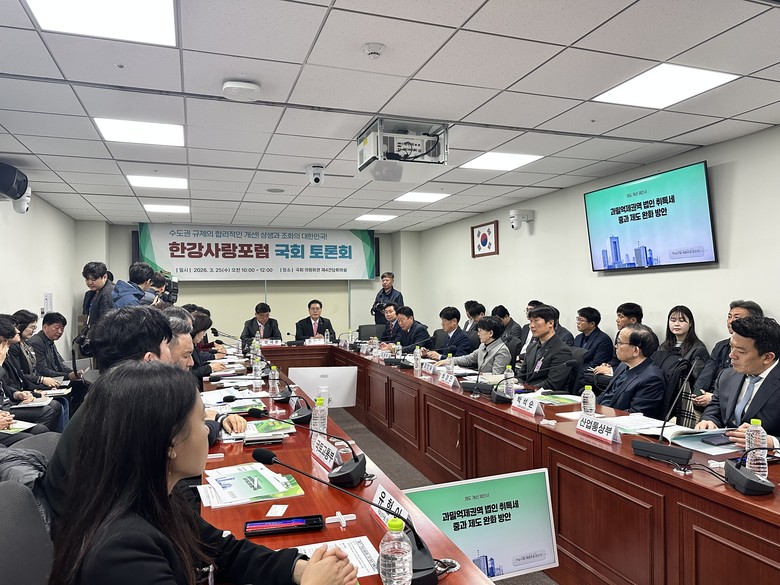 이번 토론회는 한강 유역 지자체와 국회의원 등이 참여하는 한강사랑포럼 제3차 회의로, 수도권 내 과밀억제권역·자연보전권역·성장관리권역 등으로 인한 중첩규제 문제를 공론화하고 정부에 개선을 건의하기 위해 마련됐다.