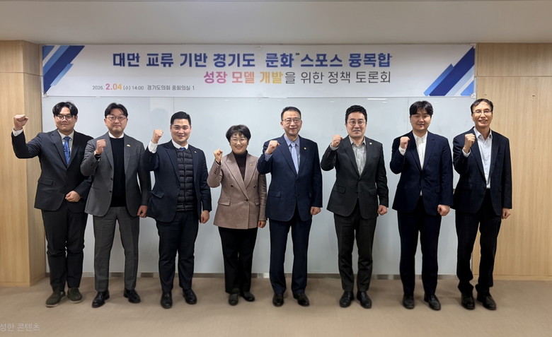 [경기도 세계타임즈=송민수 기자] 경기도의회 경기도–대만 산업·문화·스포츠 교류발전연구회(회장 최병선)는 2월 4일(수) 오후 2시, 경기도의회 중회의실1에서 「대만 교류 기반 경기도 문화·스포츠 융복합 성장모델 개발」 연구용역 최종보고 및 정책토론회를 개최했다.