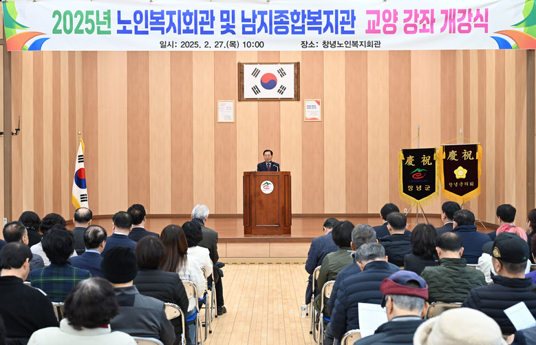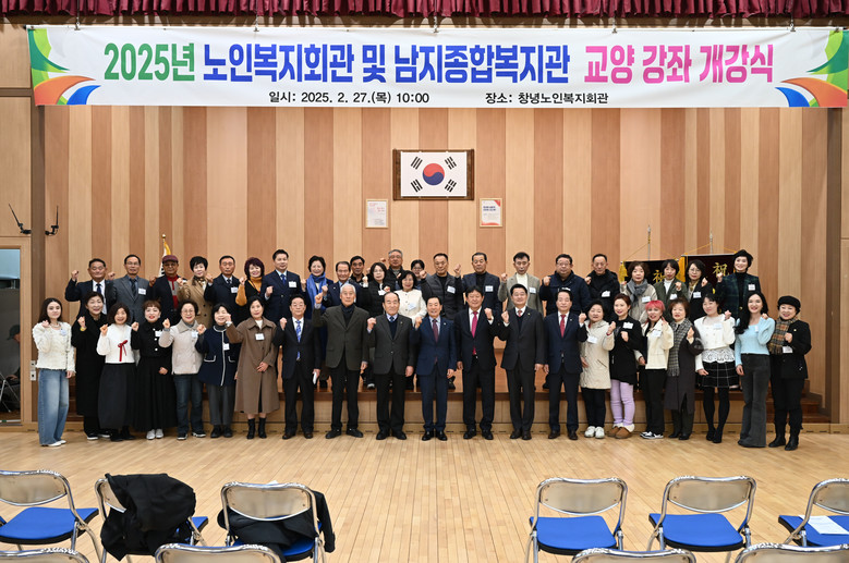 [창녕군 세계타임즈=최성룡 기자] 창녕군(군수 성낙인)은 지난 27일 창녕노인복지회관 대강당에서 관내 노인복지회관 3개소와 남지종합복지관의 2025년도 교양강좌 개강식을 성황리에 개최했다고 밝혔다.