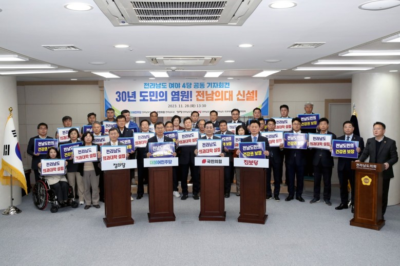 - 전남도의회 의대유치 대책위 제안, 여야4당 초당적 수용.. 공동회견 성사