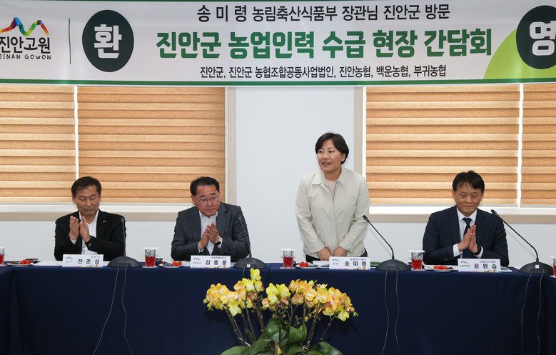 [진안 세계타임즈 = 박민서 기자] 진안군은 21일 송미령 농림축산식품부 장관이 군을 방문해 외국인 계절근로자 프로그램 운영 현장을 점검했다고 밝혔다.