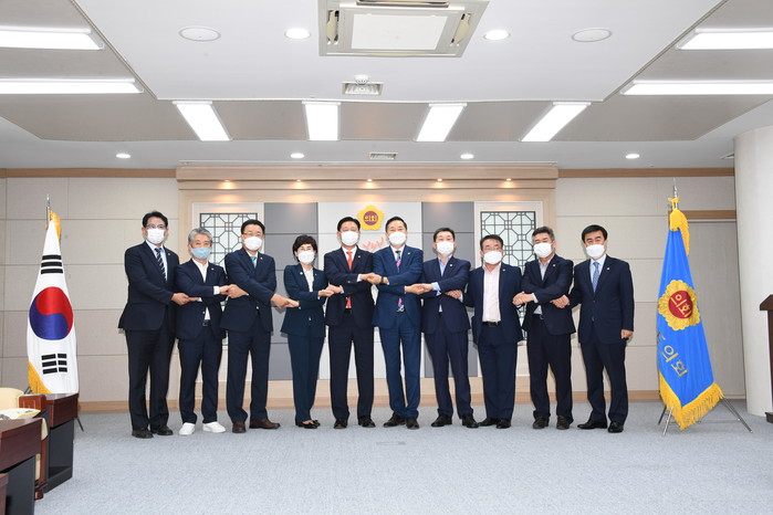 광주시‧전남도의회는 8일 전남도의회에서 광주시의회 김용집 의장, 조석호‧정순애 1,2부의장, 정무창 의회운영위원장, 이홍일 행정자치위원장과 전남도의회 김한종 의장, 구복규‧김성일 1,2부의장, 전경선 의회운영위원장, 박문옥 기획행정위원장 등이 참여하는 간담회를 개최했다.