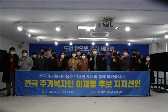 전국 주거복지인 이재명 후보 지지자 모임은 기자회견을 통해 “주거권은 인간으로서 누려야 할 기본권이지만 현재 우리나라의 현실은 매우 암담하다. 특히 장애인, 아동청소년, 노인 등과 같이 사회적 취약계층의 돌봄 현실은 더욱 참담하다.”고 밝히며“서민과 취약계층, 장애인을 포함해 우리 국민 누구라도 최소한의 인간다운 존엄을 지킬 수 있는 사회로 전화시킬 대통령이 필요하다”고 전제하며, 이에 “이재명 후보가 경기도지사 시절 펼친 경기도 사회주택 경험을 통해 민간과 공공의 협력이 만들어낸 공동체의 힘을 확인하였다.”고 강조하고“우리 주거복지인은 활동 경험를 바탕으로‘국민의 기본권인 주거권을 보장’하고, 대전환의 시대 주거복지를 확장시킬 수 있는 대통령 후보는 이재명 후보 밖에 없음을 확인하였다.”라고 밝혔다.