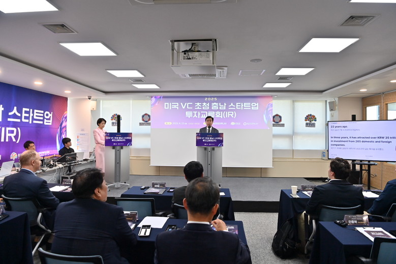 김태흠 지사와 미국 투자자, 투자 유치 발표기업, 국내 기업인, 관계기관 등 100여 명이 참석한 가운데, 이번 행사는 투자 상담, 스타트업 투자 발표, 교류 등의 순으로 진행했다.