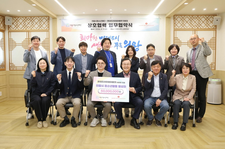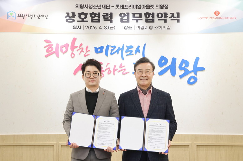 [의왕시 세계타임즈=송민수 기자] 의왕시청소년재단(이사장 김성제)은 4월 3일 시청 소회의실에서 ‘의왕시 청소년활동 활성화’를 위한 업무협약을 롯데프리미엄아울렛 의왕점과 체결했다.
