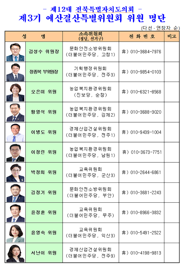 이후 예산심사 역량강화를 위해 나라살림연구소 수석연구위원을 초빙하여 전북 재정 현황과 문제점 및 개선방안 등에 대한 연수를 통해 내년 본예산 심사방향 등을 논의하였다.