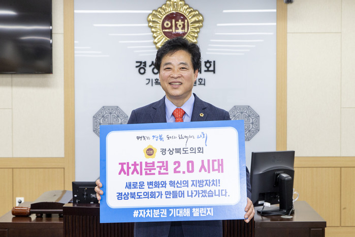 [경북=세계타임즈 한성국 기자] 경상북도의회 이춘우 의원(영천)이 26일 자치분권 2.0시대를 준비하고 응원하기 위한 ‘자치분권 기대해’ 챌린지에 동참했다.
