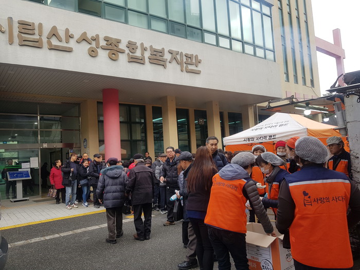 [대전=세계타임즈 이채봉 기자] 추운날씨에도 다양한 봉사를 꾸준히 하고 있는 대전시 SNS 봉사단체 사랑의 사다리 밴드(리더 이정제)는 23일 오전10시, 대전광역시립산성종합복지관에서 서구시각장애인협회원들에게 바비큐 통닭 봉사로 우리 사회의 따뜻한 사랑을 전달 하였다.