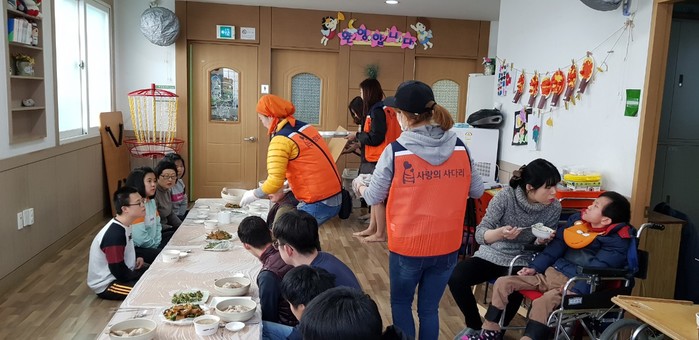 아회 장애인주간보호센터 박정욱 원장은 “오늘 추운날씨에도 사랑의 사다리 밴드에서 장애인 원생들을 위해서 삼계탕을 지원해 주어서 큰 힘과 위안이 된다.”면서 감사함을 전했다.