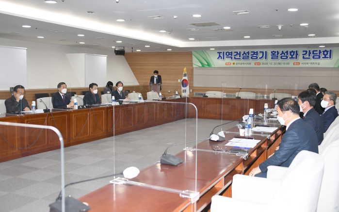 [광주=세계타임즈 손권일 기자] 광주시의회 산업건설위원회(위원장 이정환)는 12월 22일 오후 3시 시의회 대회의실에서 최근 코로나19로 인해 침체기를 벗어나지 못하고 있는 우리지역 건설관련 협회의 애로사항을 청취하고 건설경기 활성화 방안 등 현안사항을 논의하기 위한 간담회를 개최하였다.