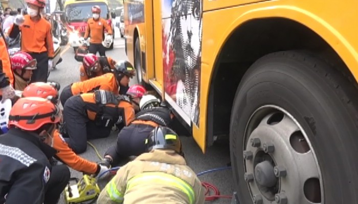 경찰과 소방당국은 정확한 사고 원인을 조사하고 있다.10일 오후 4시 27분쯤 서울 용산구 이태원로에서 오토바이와 버스 간 추돌사고가 발생해 오토바이 운전자가 현장에서 사망한 것으로 확인됐다. <사진제공=서울 용산소방서