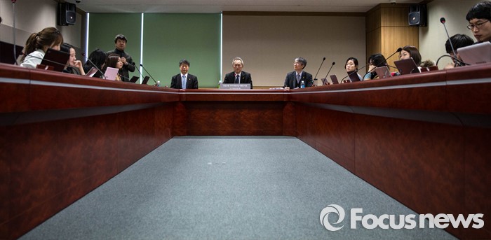 이에 대해 특조위는 "조사결과를 바탕으로 세월호의 복원성을 다시 계산해 침몰 시점과 원인을 새롭게 규명할 필요가 있다"고 강조했다.(서울=포커스뉴스) 17일 오전 서울 중구에 위치한 세월호 특별조사위원회에서 열린 기자간담회에서 이석태 세월호 특조위 위원장이 간담회 시작을 기다리고 있다. 2016.02.17 성동훈 기자