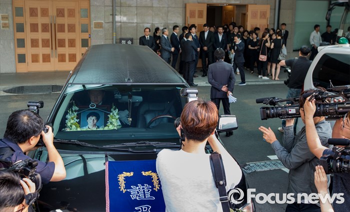 (서울=포커스뉴스) 뇌사 판정을 받고 장기를 기증한 뒤 사망한 배우 故김성민의 발인식이 28일 오전 서울 서초구 가톨릭대학교 성모병원 장례식장에 엄수되고 있다.