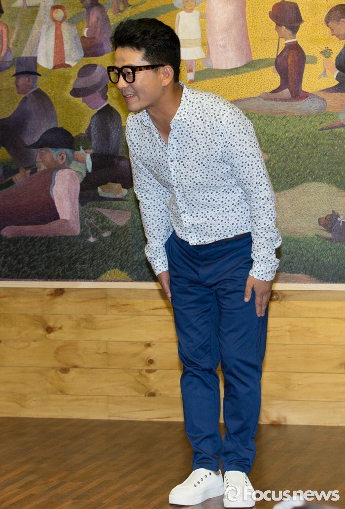 (서울=포커스뉴스) 28일 오후 서울 마포구 신한류플러스에서 여린 제1회 홍대 코미디위크 기자간담회에 참석한 개그맨 김준호가 취재진에게 인사하고 있다.