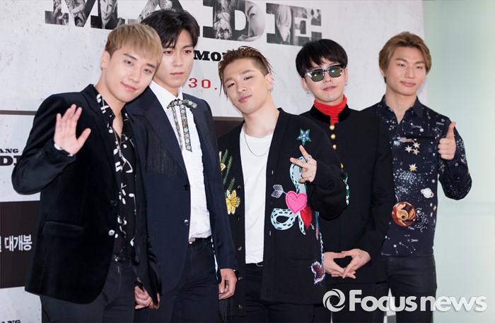 (서울=포커스뉴스) 28일 오후 서울 CGV 영등포점에서 영화 '빅뱅 메이드' VIP 시사회에 참석한 빅뱅이 포즈를 취하고 있다.