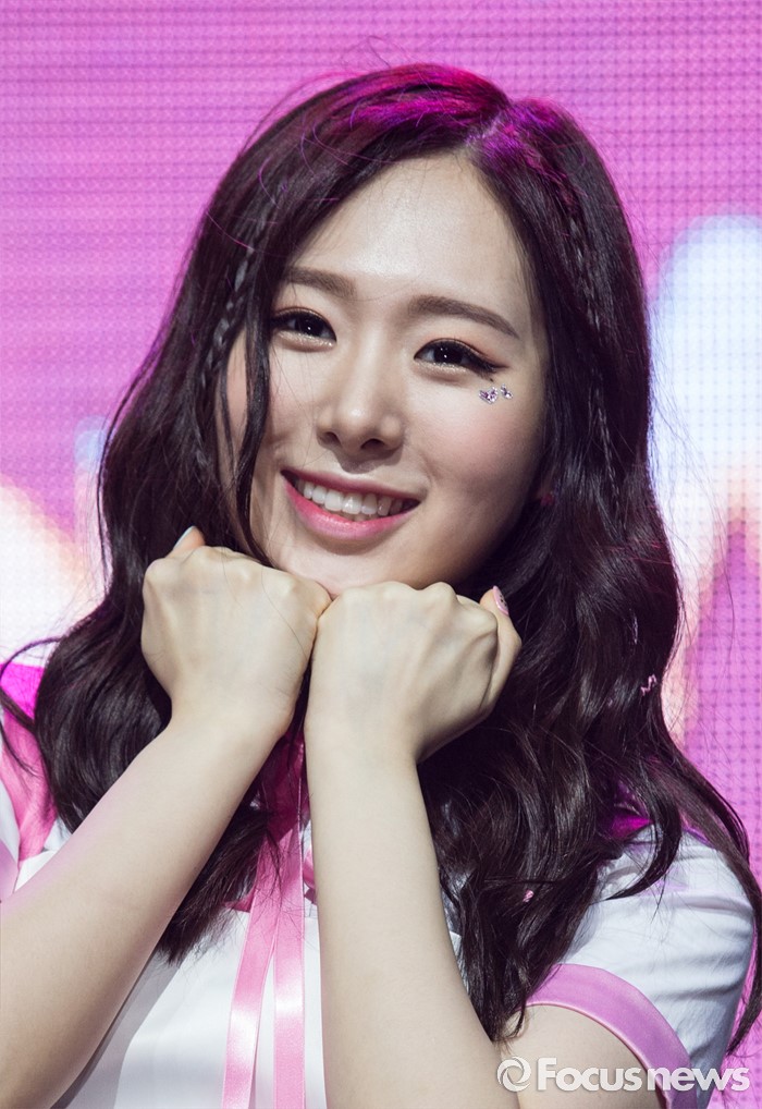 (서울=포커스뉴스) 29일 오전 서울 마포구 예스24 무브홀에서 열린 걸그룹 소나무의 미니앨범 '넘나 좋은 것' 쇼케이스에 참여한 멤버 민재가 포토타임을 갖고 있다.