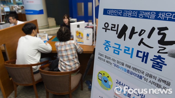 (서울=포커스뉴스) 5일 오후 서울 중구 우리은행 본점에서 은행 고객들이 사잇돌 중금리 대출 상담을 받고 있다.