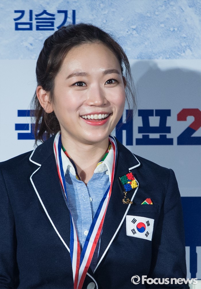 (서울-포커스뉴스) 6일 오전 서울 중구 동대문 메가박스에서 열린 영화 '국가대표2' 제작보고회에 참석한 배우 김슬기가 미소를 짓고 있다.