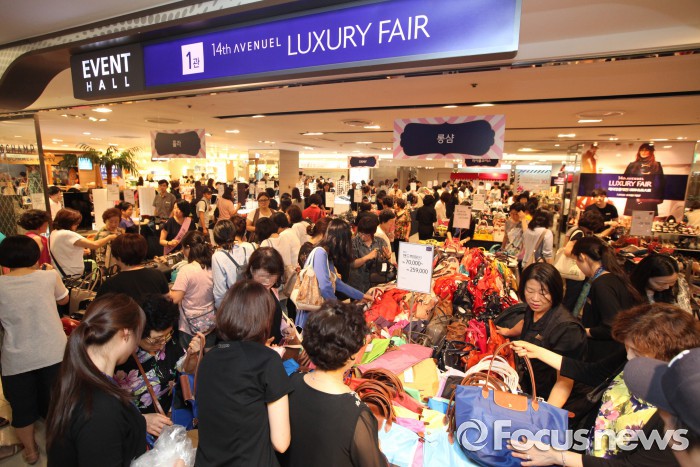 김지은 롯데백화점 해외패션부문 부문장은 “소비자들이 휴가를 가기 전 해외명품 상품을 저렴하게 구입할 수 있도록 행사 기간을 전년보다 앞당기고, 특가 상품 등의 물량을 강화했다”며 “이번 해외명품대전을 통해 재고 소진과 더불어 소비 심리가 활성화 될 수 있도록 행사를 최대 규모로 준비했다”고 말했다.2015년 7월 열린 롯데백화점 해외명품대전 행사장에서 소비자들이 물건을 고르고 있다.<사진제공=롯데백화점>
