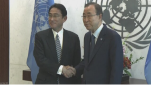 일본 NHK 등 복수 매체는 미국 뉴욕을 방문 중인 기시다 외무상이 28일(현지시간) 반기문 사무총장을 만나 북한의 핵실험과 탄도 미사일 발사에 대해 유엔 안전보장이사회(안보리)가 의연히 대응을 해야 한다는 인식을 공유했다고 보도했다.