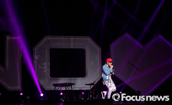 (서울=포커스뉴스) 8일 오후 서울 광진구 예스24 라이브홀에서 가수 준케이가 첫 솔로 미니앨범 쇼케이스를 열고 무대를 선보이고 있다.