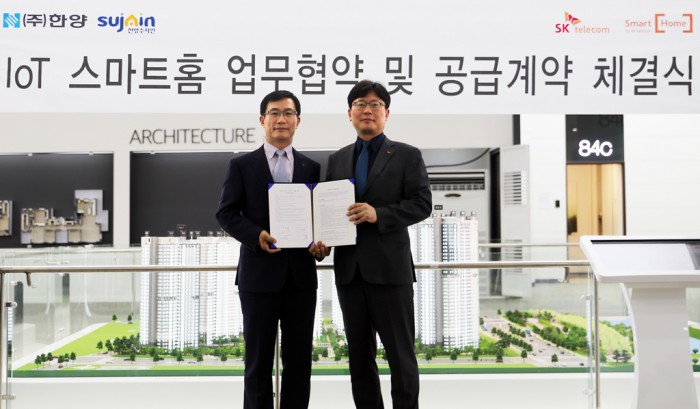 (서울=포커스뉴스) SK텔레콤은 9일 한양과 8월 분양 예정인 ‘한양 수자인’ 아파트 1500세대를 대상으로 스마트홈 서비스를 공급하기로 했다.