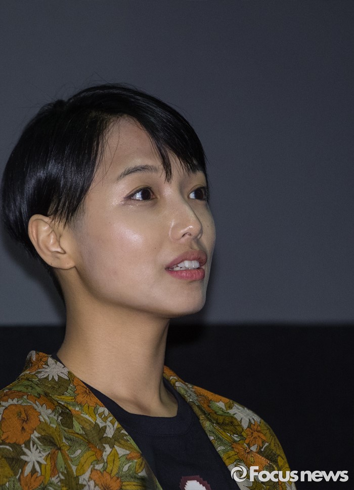 (서울=포커스뉴스) 9일 오후 서울 동작구 아트나인에서 열린 영화 '시발, 놈 : 인류의 시작' 언론시사회에 참석한 배우 김보리가 취재진에게 질문을 받고 있다.