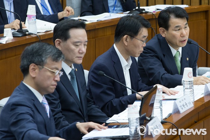 (서울=포커스뉴스) 11일 오전 서울 여의도 국회에서 열린 민생경제 특별위원회 전체회의에 참석한 정은보 금융위원회 부위원장이 의원들의 질의에 답하고 있다. 왼쪽부터 최상목 기획재정부 1차관, 김현웅 법무부 장관, 강호인 국토교통부 장관, 정 부위원장.